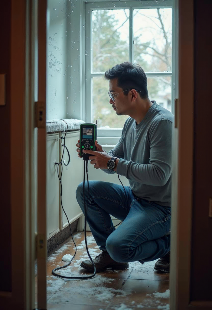 Un technicien se déplace pour observer les signes visibles de la fuite, interroger les occupants, et identifier les zones sensibles. L’objectif : comprendre rapidement le contexte sans démolition.